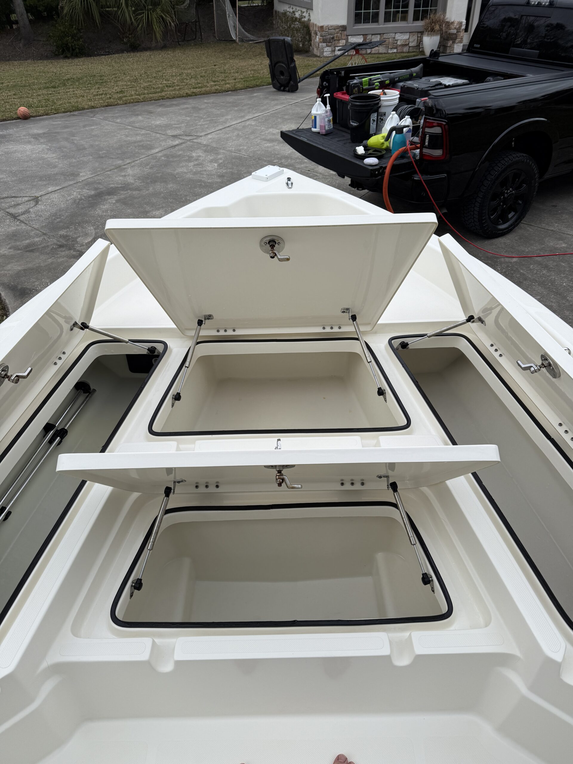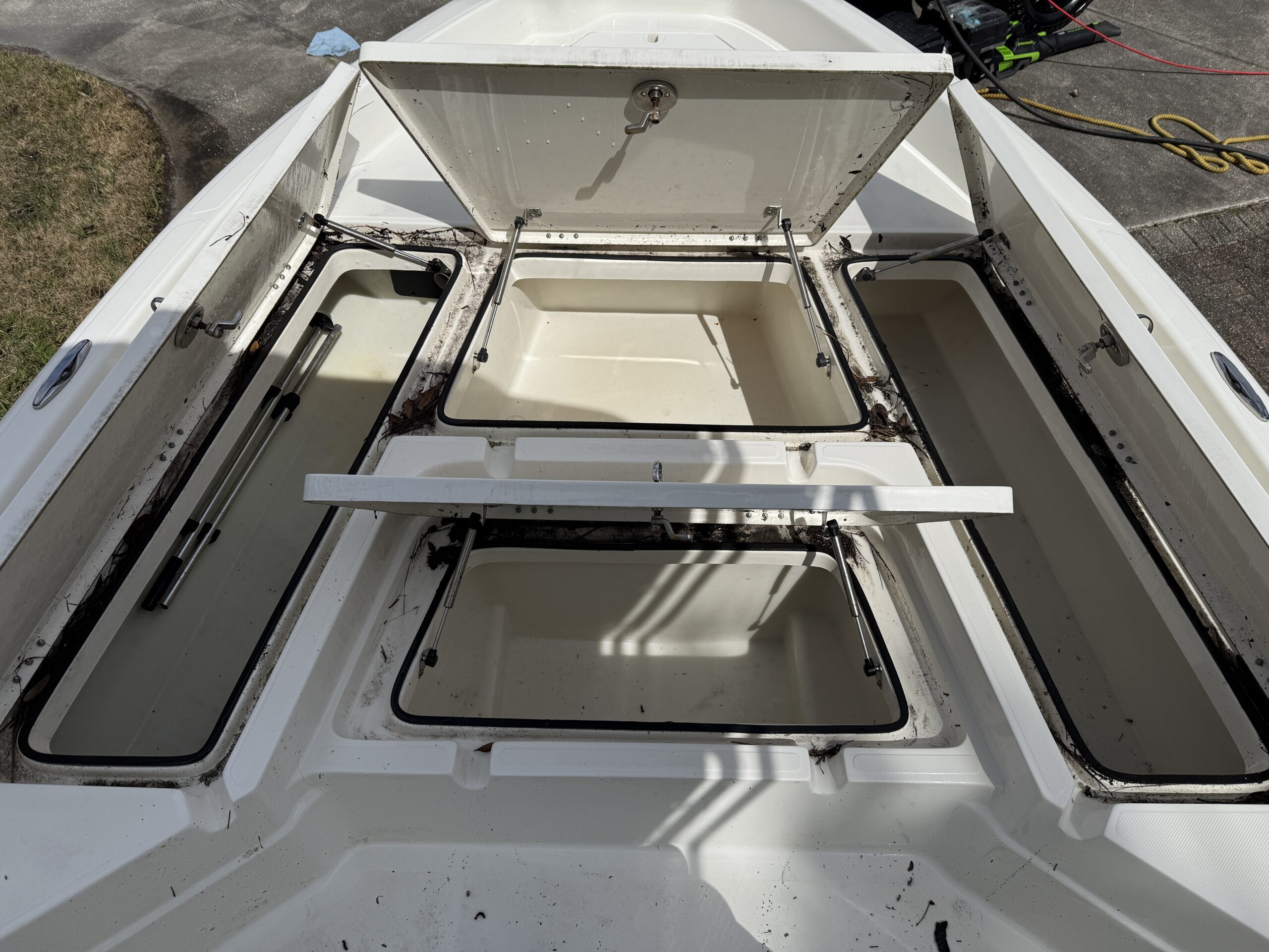 *If storage areas have been emptied prior to our arrival* We open and hose out all storage compartments, removing any major dirt or debris, and wax the inside to help make future cleanings easy.